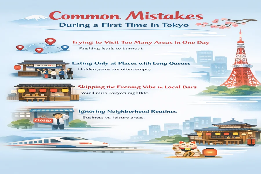 Common Mistakes during a first time in Tokyo, Source: GPT